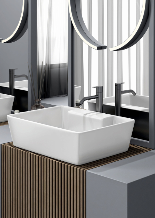 With an edge thickness of only 5 mm and our advanced RORO Pureguard hygiene surface technology for easy cleaning, the new RORO Airio ceramic vessel basins transform every bathroom into a recreation zone of sophisticated style and visual delight.
